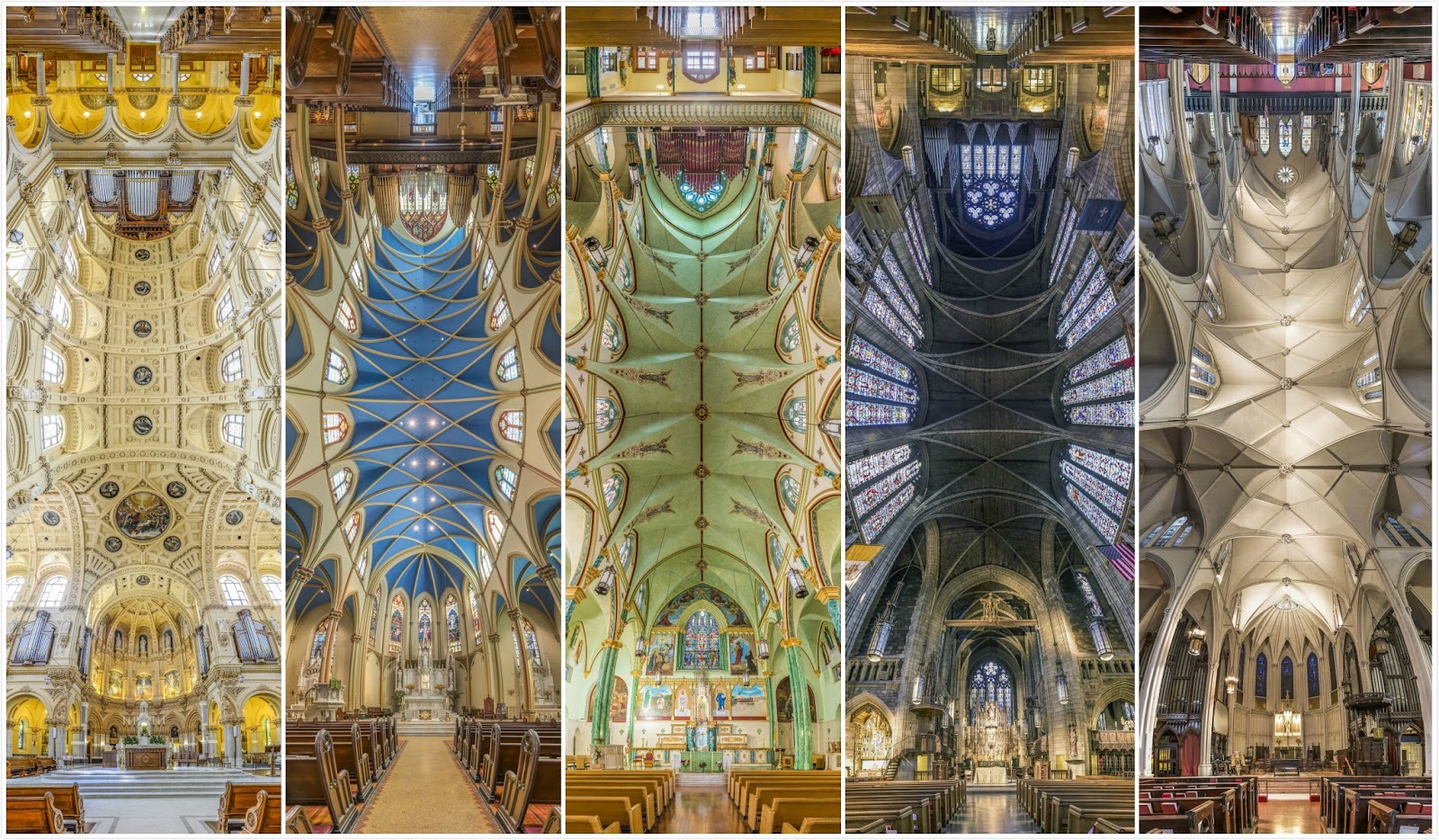 攝影師Richard Silver在這幾年,以特別的垂直全景攝影,走遍美國紐約,捕捉下了紐約市內各個大教堂的內部之美。